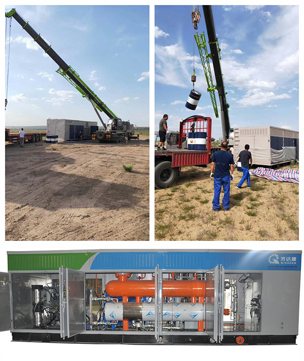 7月6日,武漢齊達(dá)康兩臺(tái)日處理3-5萬(wàn)方天然氣的井口天然氣回收處理設(shè)備成功抵達(dá)客戶氣井,順利完成吊裝。