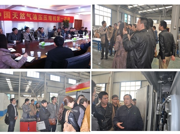 湖北民生石油一行20多人來齊達(dá)康學(xué)習(xí)交流,公司張總給予了技術(shù)指導(dǎo),售后孫部長對天然氣液壓壓縮機(jī)的規(guī)范使用做了詳細(xì)的講解和演示。