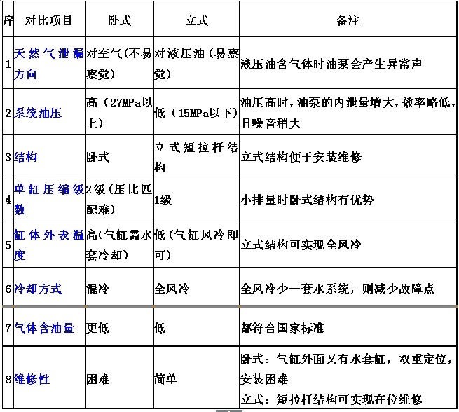 三、立式和臥式液壓活塞壓縮機(jī)綜合比較