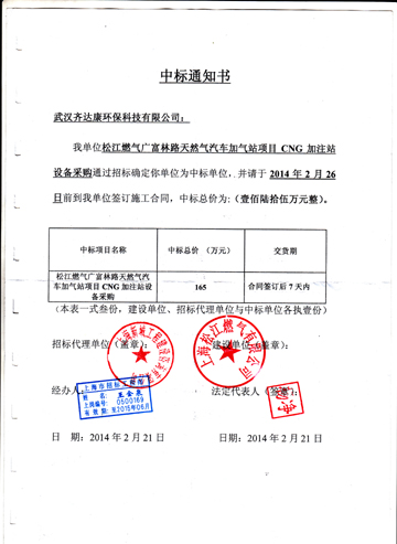 熱烈祝賀齊達(dá)康中標(biāo)上海松江燃?xì)猓兄x給予齊達(dá)康的信任!